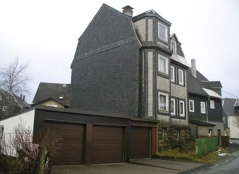 Eingebettet in die malerische Landschaft Thüringens, erinnert die charakteristische Schieferverkleidung an die Bergbaugeschichte der Region und verleiht dem Gebäude seinen besonderen Charme.